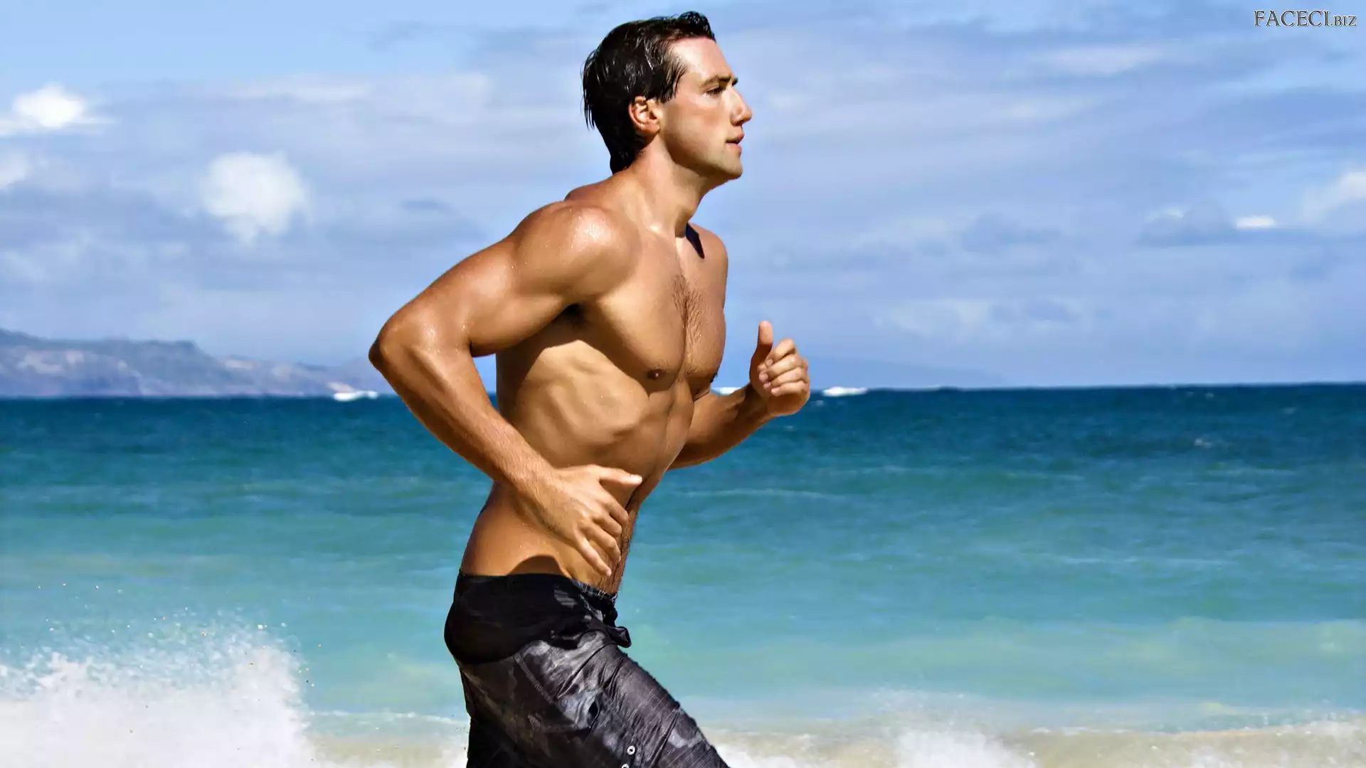 Mężczyzna, Niebo, Biegnący, Morze - faceci.biz